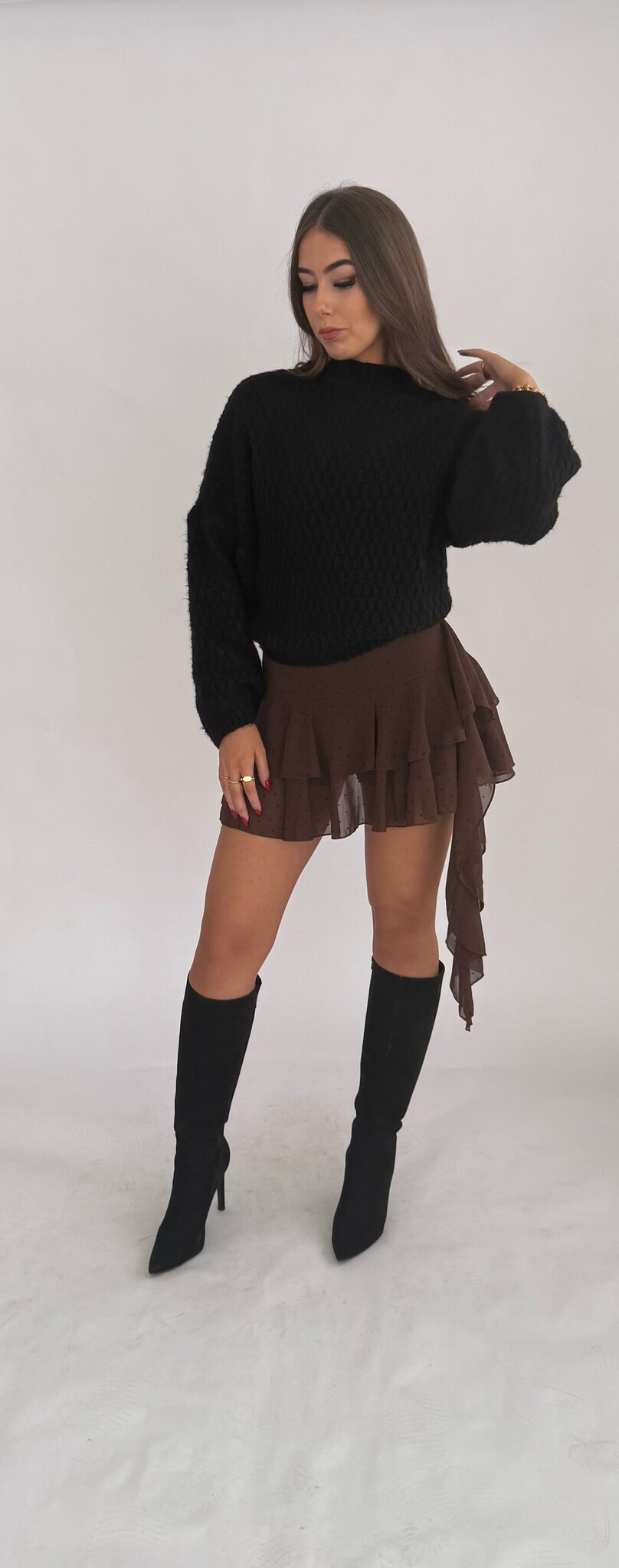 Model Esra is 170cm en draagt maat one-size